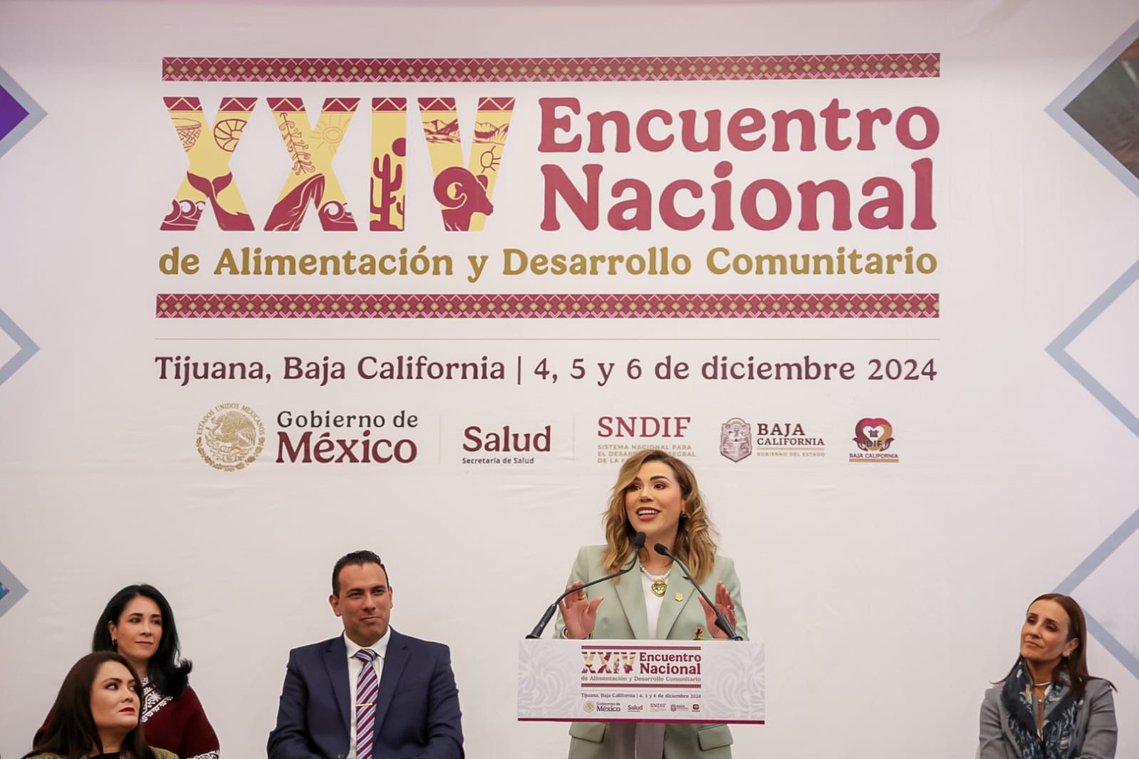 Tijuana.- Con el objetivo de intercambiar estrategias y consolidar los proyectos que garanticen la salud humanitaria, Baja California es anfitriona del XXIV Encuentro Nacional de Alimentación y Desarrollo Comunitario, un evento inaugurado por la gobernadora Marina del Pilar Avila Olmeda, donde se fortalece la coordinación entre el Sistema Nacional DIF y los 32 Sistemas Estatales DIF.