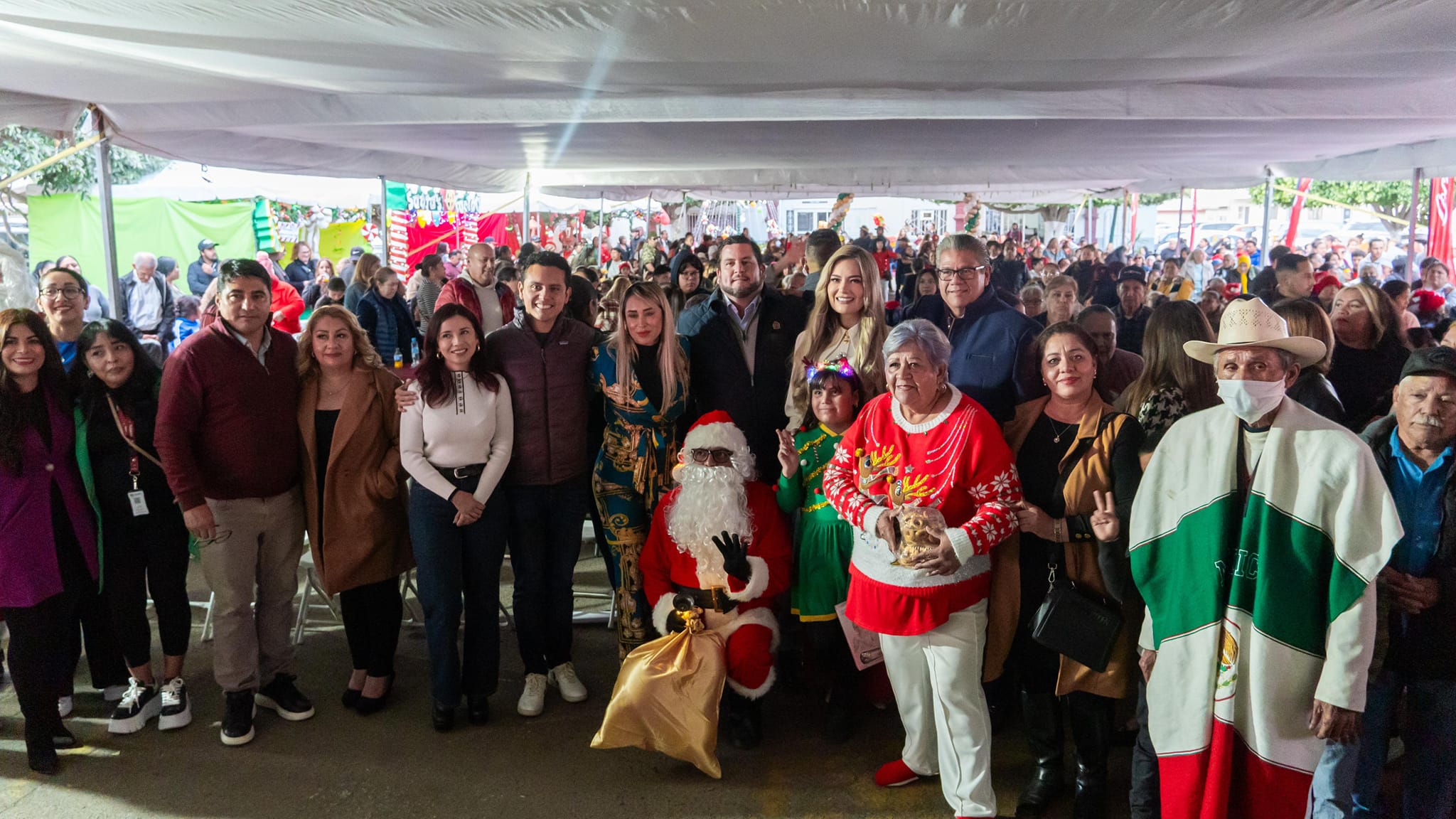 Como parte de la celebración, el Alcalde hizo entrega de juguetes a las niñas y niños presentes, buscando llevar alegría y mostrar que el espíritu navideño se extiende a todos los rincones de la ciudad; también entregó vales por cenas navideñas y cobijas.