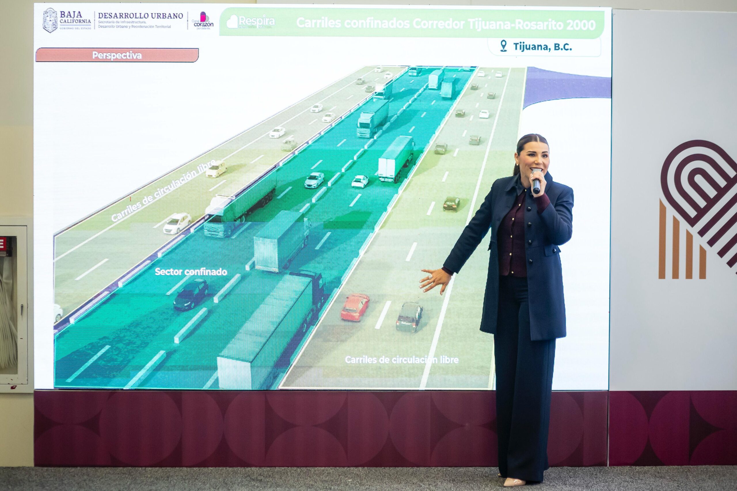 Otro de los proyectos anunciados es la ampliación y modernización de 12 kilómetros del Corredor 2000 en Tijuana, como parte del programa RESPIRA. Esta vialidad, que registra una afluencia de casi 100 mil vehículos diarios, actualmente cuenta con solo dos carriles por cada sentido.